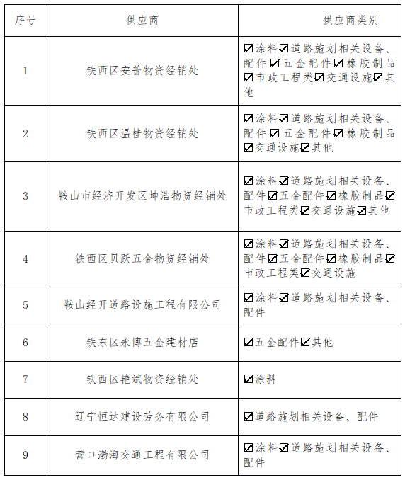 東澤公司供應商入庫名單公告